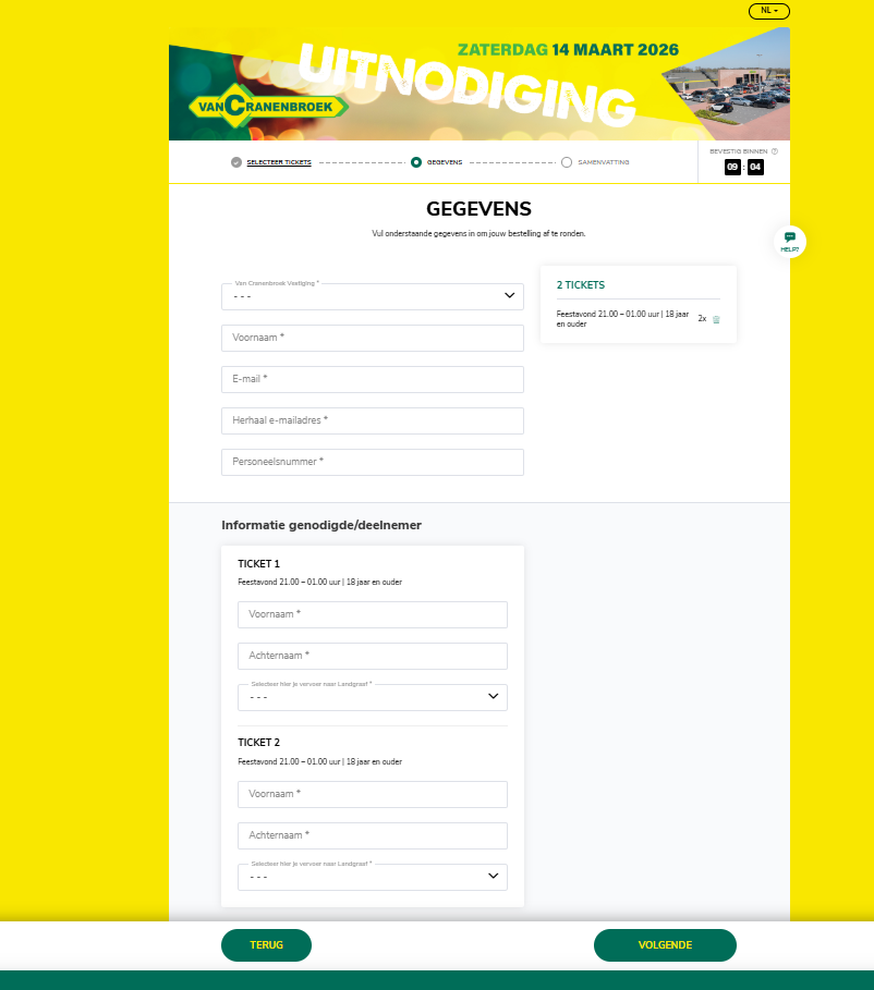 De bestelmodule is een belangrijk onderdeel van de beleving rondom een evenement. Daarom biedt Ticketpoint de mogelijkheid om deze volledig aan te laten sluiten bij jullie organisatie of evenement. Je kunt gebruikmaken van de standaard Ticketpoint look & feel, maar het is ook mogelijk om een volledig eigen uitstraling te creëren. Zo ontstaat een herkenbare en professionele omgeving voor bezoekers, deelnemers of genodigden.