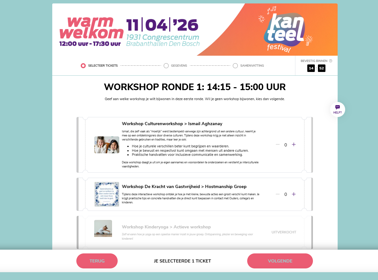 Naast een algemene registratie konden deelnemers zich direct inschrijven voor verschillende workshoprondes, waarbij per workshop een capaciteitslimiet werd ingesteld. Om deelnemers te helpen bij het maken van hun keuze, zijn toelichtingen en afbeeldingen toegevoegd bij de workshops. Dit zorgde voor een duidelijk en overzichtelijk inschrijfproces.