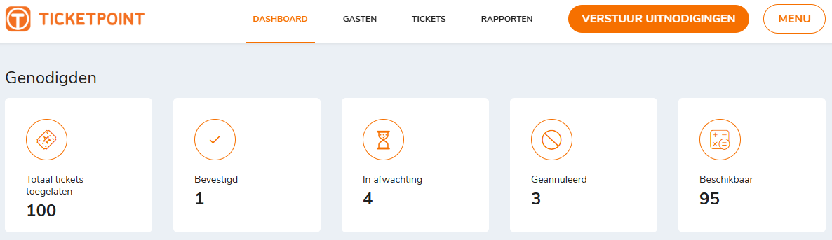 * Het aantal tickets in afwachting: van mensen die je wel een uitnodiging hebt gestuurd, maar die nog niet hebben gereageerd.